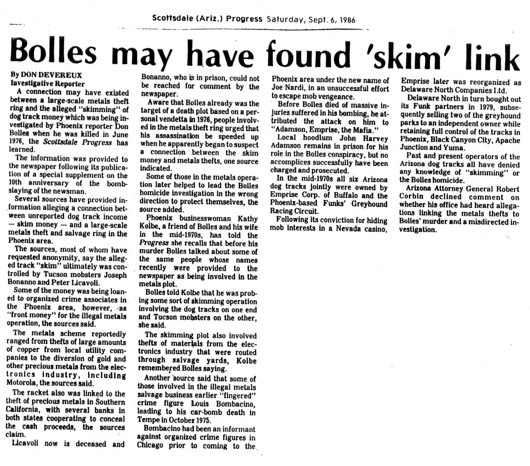 The third is an article which appeared under my byline in the Scottsdale Progress during September 1986. I have included it only to answer questions about whether I actually had made public crucial aspects of this information prior to the still-misdirected 1993 re-trials of Max Dunlap and Jim Robison. Curiously, the lead investigator chosen for the state attorney general’s office was George Weisz, son of William Weisz.