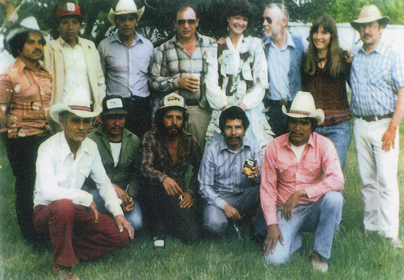 A final color photo as a reflection of happier times has been retrieved from AFW archives, not from the IRE Arizona Project. It also was taken at Arrowhead Ranch in the early 1980s after a birthday party for a veteran and popular union organizer named Karen Kincaid, now living as Karen McGrew with husband and family in Raleigh, North Carolina. To Karen’s right, holding a cup, is AFW head Lupe Sanchez, now living in Mazatlan, Mexico. And to Karen’s left, also wearing sunglasses, is journalist and AFW press secretary Don Devereux, now of Tempe, Az. At the far right in that back row is another leading union organizer named Michael Carey, now residing in Imperial Beach, Calif. A third key union organizer is Jose Ojeda, kneeling below Karen, now living with wife and family in Surprise, Az. The other men are all Mexican National farmworkers, undocumented at the time, among hundreds of those very hard working folks enjoying vastly improved wages and working conditions as of 1979 under union contract at Arrowhead Ranch.